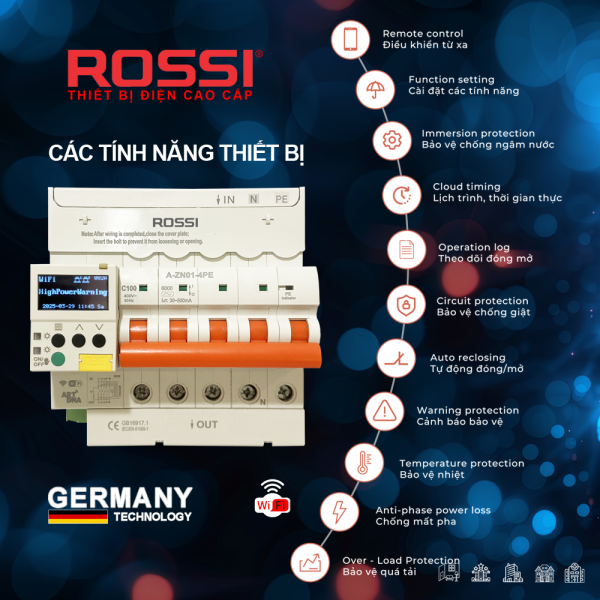 Chịu nhiệt độ cao: Điện được chuyển đổi dòng 5A, bề mặt kính chịu nhiệt lên đến 300 độ C, vật liệu nhựa PC cao cấp chống cháy đảm bảo an toàn tuyệt đối